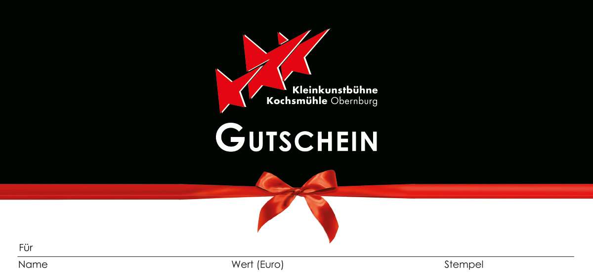 Wir möchten Ihnen unseren Gutschein für eine Veranstaltung in der Kochsmühle ans Herz legen. Verpackt mit dem aktuellsten Programmheft kann der Beschenkte aus über 50 Veranstaltungen in 2026 wählen. Da ist doch auf jeden Fall für Jeden etwas dabei: Comedy, Kabarett, Musik oder Lesung?